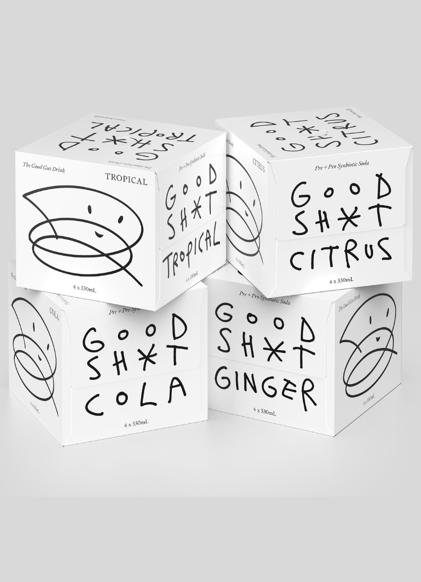 Good Sh*t is the world’s first Pre + Pro Synbiotic soda formulated for your good gut health. Created in New Zealand, it’s available in four yum flavours: Cola, Citrus, Ginger and Tropical.