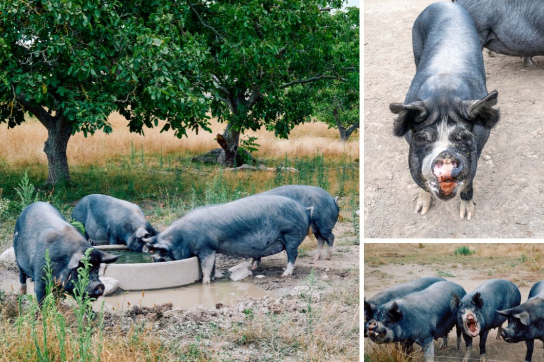 First, we met the Purebred Berkshire pigs, who were primarily used as breeding stock. We’d never seen such big pigs before, and ones with such intelligence and unique personalities.