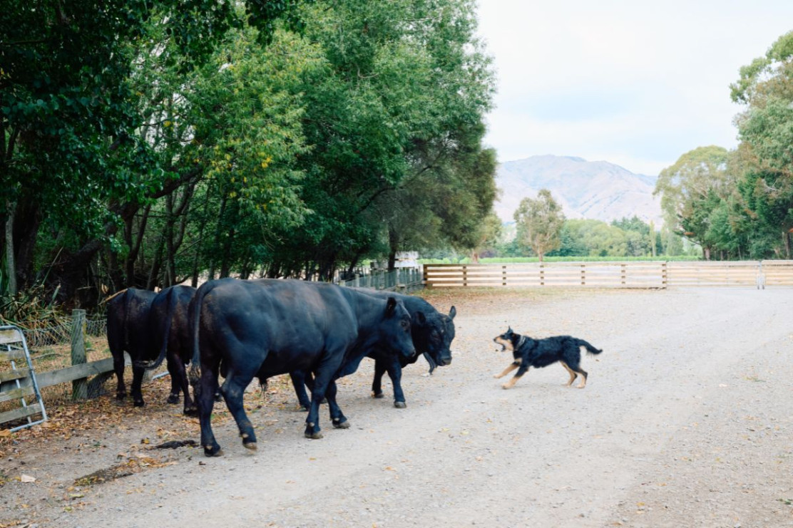 Moving back outdoors, Farm Manager, Greg Crombie, put us to work with shepherds’ whistles and after showing him what we had with a few pitiful blows of air, he rightfully took back the control. Greg introduced us to the dogs, showcasing how each breed had different methods of herding sheep and bulls –Huntaways using their constant barking and the New Zealand Heading Dog by maintaining relentless eye contact.