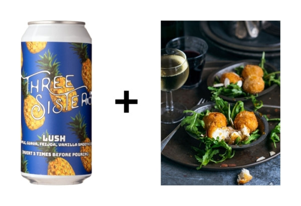 Lush Three Sisters Sour This thick, sweet, smoothie-like beer cuts nicely through the saltiness of our Goat Cheese Croquettes with Honey and Toasted Almonds. |