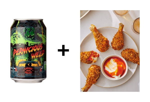Pernicious Weed Garage Project IPA Powerful notes of diesel, passionfruit and sauvignon blanc balance perfectly with our tender, juicy Crispy Fried Chicken Drumsticks. | |