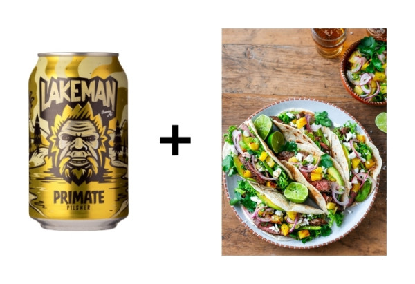 Primate Pilsner Lakeman Brewing Pilsner Our Steak Tacos with Charred Pineapple Salsa sing with the bright hops and fruity finish of this 3-time Top 25 pilsner. |