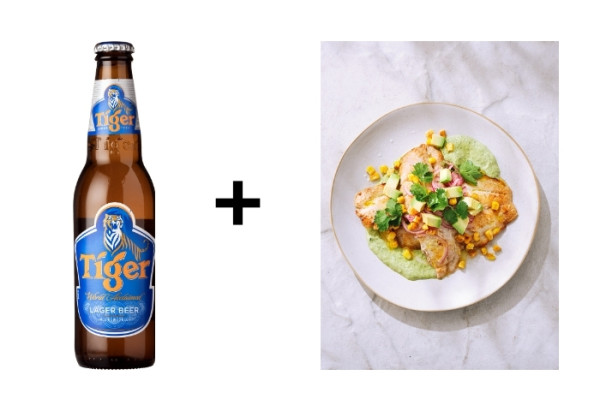 Tiger Lager Beer Tiger Lager This clean, well-balanced lager is ideal for balancing the 'kick' of our Pan-fried Fish with Green Chilli Sauce. | |