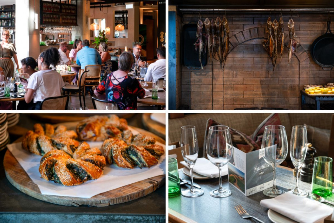 As guests arrived, they were quickly seated and offered a glass of chilled Nautilus Marlborough Cuvée Brut NV to accompany a promptly served tumbler of Avgolemono, lemon fish soup. dish editor Sarah Tuck then welcomed the enthusiastic crowd before handing over to restauranteur extraordinaire Sean Connolly to talk through the menu, and Andrew Parkinson, the articulate and entertaining Managing Partner of Negociants New Zealand, who ably stepped in to cover for Nautilus Estate General Manager Clive Jones, who was unable to make it due to airline issues. The soup was quickly followed by wildly popular Puff bread with taramasalata, and Baked saganaki, with Greek keflogravera, honey, chilli and oregano. Both were served with Nautilus Albariño 2023. Described as showing ‘fragrant ripe apricots, white blossoms, hints of honeydew melon and orange peel’ on the nose, the wine provided a perfect foil for the rich fried, puffed bread and baked cheese.