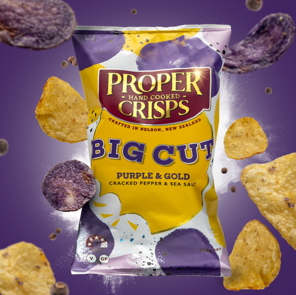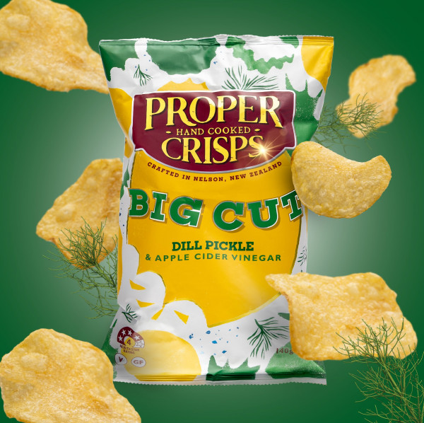 Glorious and blistery, Big Cut crisps are unpeeled, sliced big and hand-cooked low and slow for a ridiculously bigger satisfying crunch. Proper Crisps’ real foodie flavours include Marlbourgh Sea Salt with a finely ground spray of salt, Dill Pickle & Cider Vinegar that is out of this world dill-icious, Purple & Gold crisps with freshly ground cracked peppercorns and Smoked Paprika.