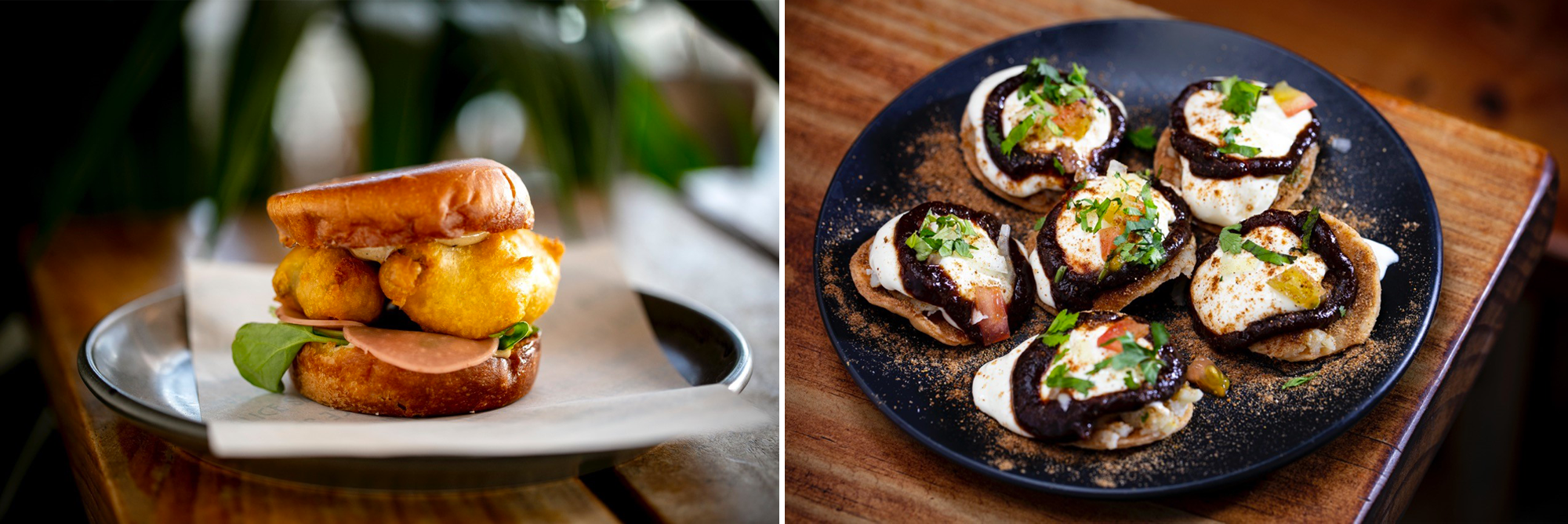 The Saint Alice Fried Oyster Brioche McMuffin chosen by Albert Cho and the Dahi Puri from Satya chosen by Connie Clarkson