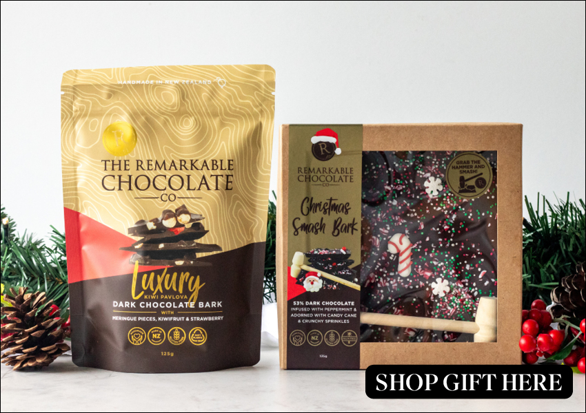 Celebrate the season with The Remarkable Chocolate Co. Festive Favourites Bundle, a joyful duo of handcrafted Christmas barks. Discover Christmas Smash Bark, rich 53 percent dark chocolate infused with peppermint and sprinkled with crushed candy cane, paired with Kiwi Pavlova Luxury Bark layered with freeze dried strawberries, red kiwifruit and meringue for a sweet taste of summer. Perfect for gifting, sharing or savouring solo all season long. Bundle available online, with individual products sold at selected retailers nationwide. Visit remarkablechocolate.com to explore the full range. RRP: from $29.00
