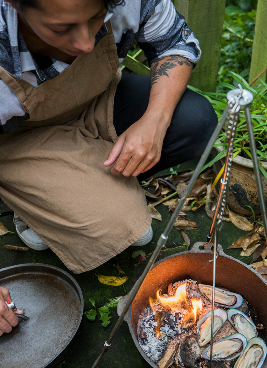 Hiakai’s centrepiece is a hangi, which involves the usual hot rocks and hours of waiting around, but in Monique’s world the food comes encased in ferns, rangiora leaves and paaro (harakeke) baskets she taught herself to weave. “People say things like, I don’t like hangi, it all tastes the same. But cooking hangi the authentic way – stripped back with no tin-foil or wire baskets – tastes like nothing you’ve ever tasted before.”