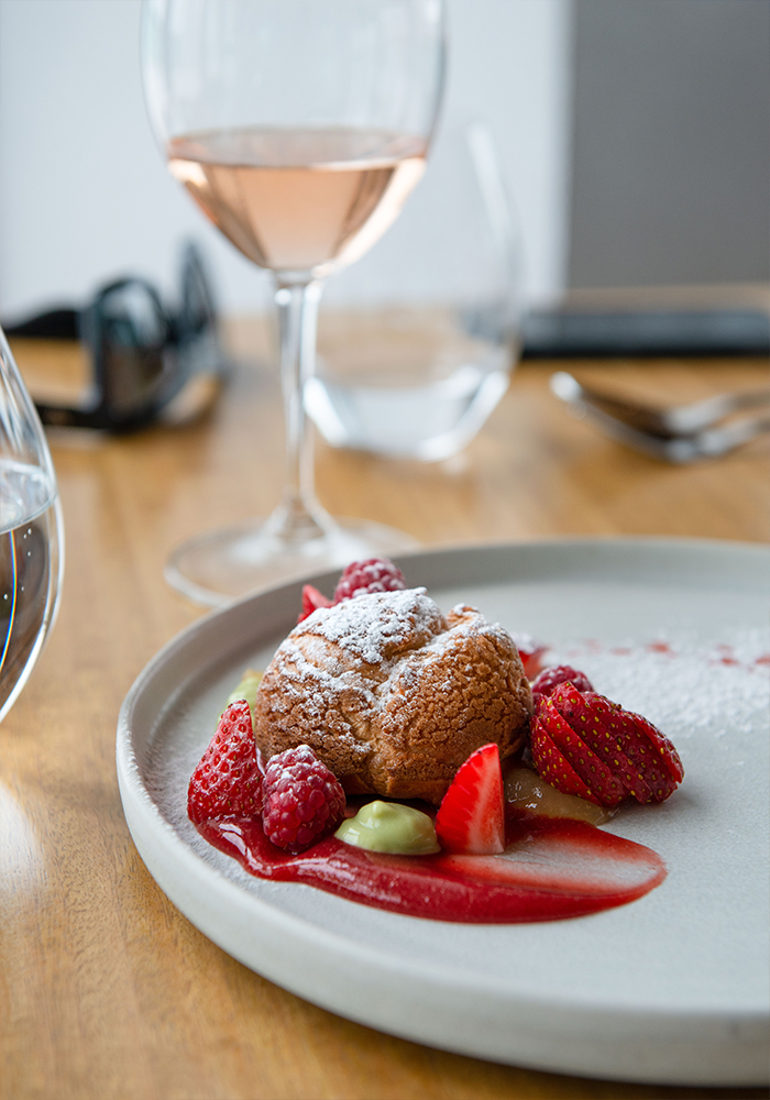 Given it was lunchtime on a Sunday with the thought of bathing suits looming in the not too distant future, we almost gave dessert a miss. Luckily, after much contemplation we chose the Choux, with strawberry, pistachio, basil and limoncello to share (a hard-fought battle between that and the Satilia noire cannelloni with pineapple, whipped panna cotta and coconut), and were thrilled with the choice. Toasty choux pastry on soft and subtle pistachio given a zing from the basil and limoncello…it was devoured with unseemly haste!