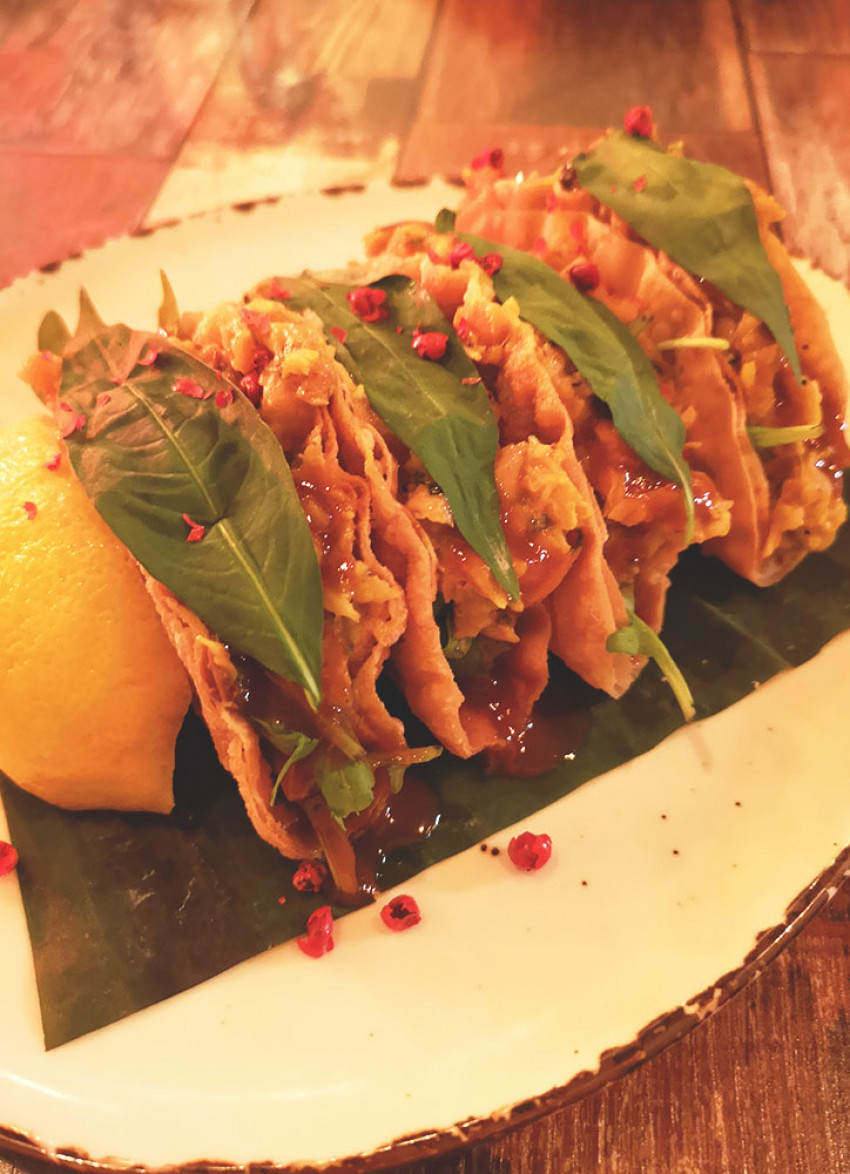 My boyfriend and I began with Nam’s suggestion of Crab Taquitos and a personal favourite of ours: Fresh Rolls. The taquitos were everything you could want in a starter – flavour, texture and it left us wanting more. The mini taco shell was thin and provided a satisfying crunch, the filling was a moreish combination of delicate crab, tamarind sauce and arugula. The kick of chilli and the squeeze of lemon took the dish to the final level. Thanks to our friendly waiter, we decided to add another one to the dish rather than fight over the third and final taquito.