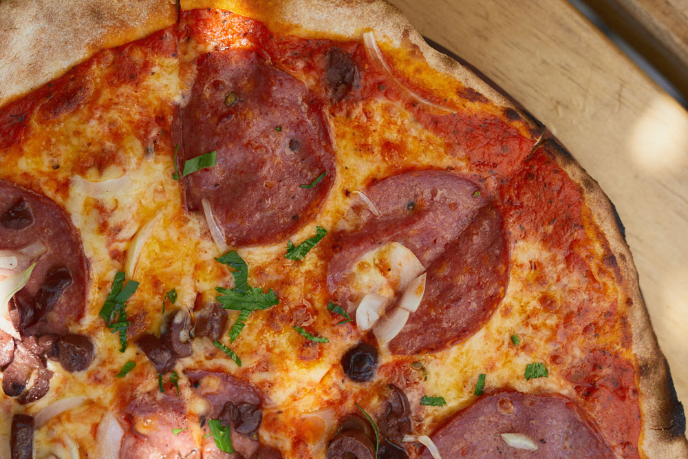 The pizzas are the stars of the menu here, they're made in a woodfire oven and are crispy and leopard-spotted with proper stretchy cheese. There's a selection of pared back classic pizzas (the 'Ruby Red' is a margherita pizza by a different name and the 'Kimbo' is a simple salami and olive pizza), as well as a few with more fulsome, inventice toppings: the 'Beef with me' brisket, watercress and horseradish pizza and the 'Green Goddess' with artichoke, courgette, feta and rocket, for instance.