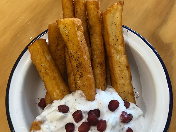 Both of our appetisers were moreish and a little bit naughty. I could have gone round two on the halloumi fries. They were served with coconut tzatziki and pomegranate sauce – together they balanced and refreshed the dish. A side note: eat them fast, while they’re still warm. They were incredible – soft on the inside and crispy on the outside.