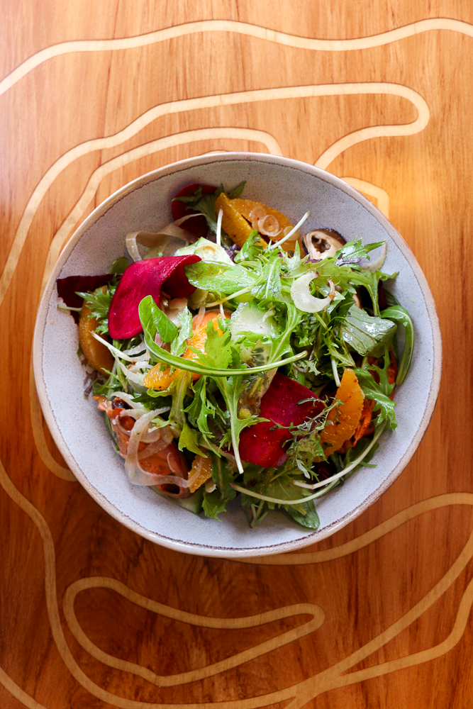 Smoked Mussel Salad / Kūtai Mina Auahi with fennel, citrus, salad greens and in house dressing