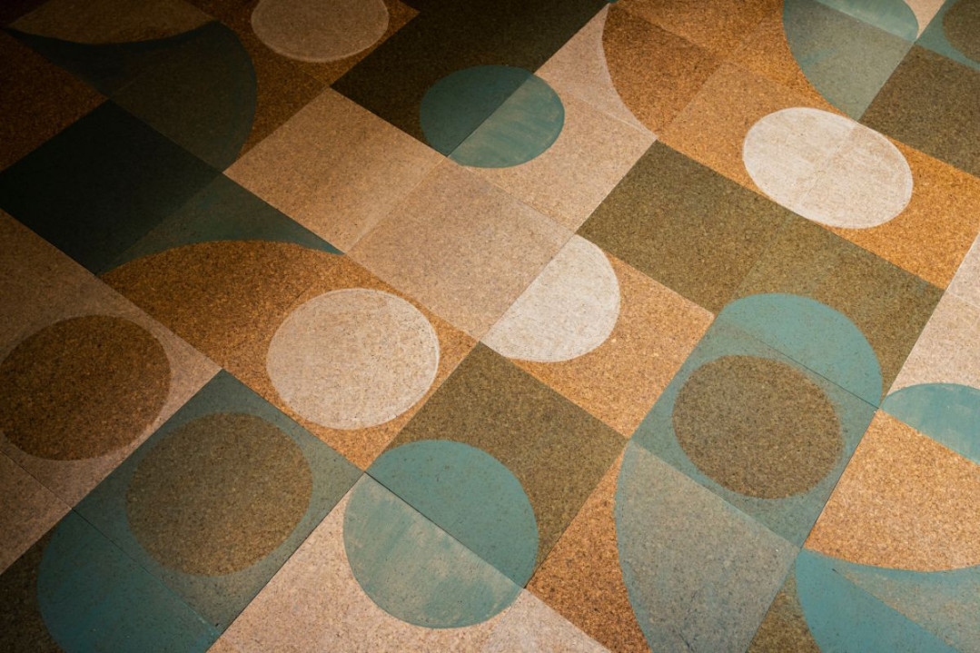 To achieve their quirky bespoke flooring, the couple stained each cork tile in Resene Colorwood Natural wood stain, before adding repeat geometric patterns with Resene Colorwood Becalm and Resene Colorwood Rising Tide before sealing the tiles with Resene Qristal ClearFloor 1K waterborne flooring urethane for a durable finish.