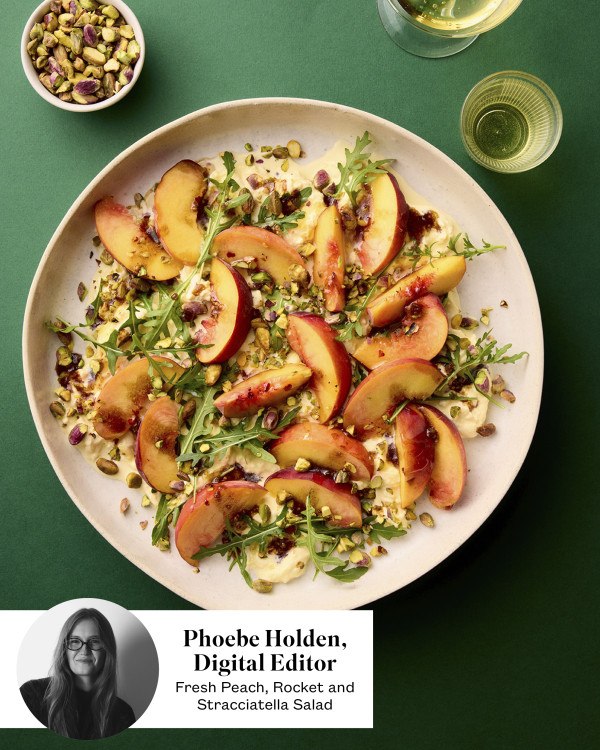 It is tradition in my family, that I do the Christmas hosting, which suits me perfectly! I love nothing more than turning on some Christmas tunes and faffing around the house getting everything ready. For the last 10 years I have been under strict instructions to make the same thing each year — my original roast salmon with pomegranate glaze. This year I can finally mix it up with my new twist on the original, with a herby, garlicky, cuminny sauce that we couldn’t get enough of on shoot day [Christmas Salmon, page 64]. For general nibbling over the Christmas break I’ll be making Melie’s Brown Butter, Amaretto and Prune Mince Tarts with Cinnamon Pastry (page 108), and to go with meaty mains, it’ll be the Fresh Peach, Rocket and Stracciatella Salad on page 80. It looks like it will be Christmas number two without my darling men/boys, with one in London and one in Melbourne — it’s so hard to get my head around the fact that I won’t be giving them big squeezezy hugs so I’ll be doing my best to keep occupied!