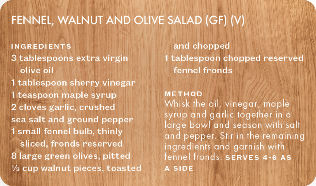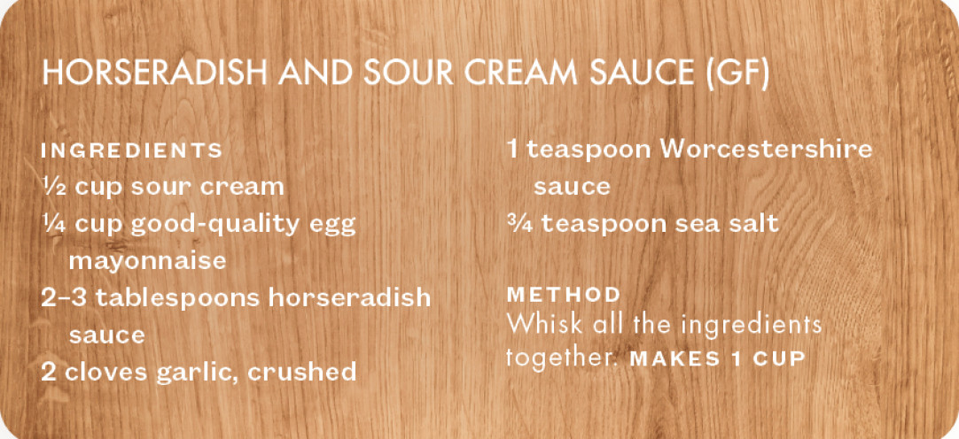 Put the salmon on a large board and spoon over some of the Fennel Salad, serving the rest separately. Put the Beetroot and Tahini Dip and the Horseradish and Sour Cream Sauce into bowls and place alongside with the asparagus and crusty bread.