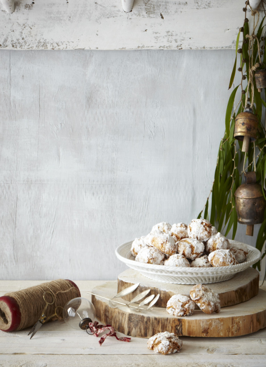 To assemble: Put the caster sugar and icing sugar into separate shallow dishes. Scoop out a small spoonful of the dough and roll into a ball in the palm of your hands. Repeat until you have 20 balls. Roll in the caster sugar then in the icing sugar.