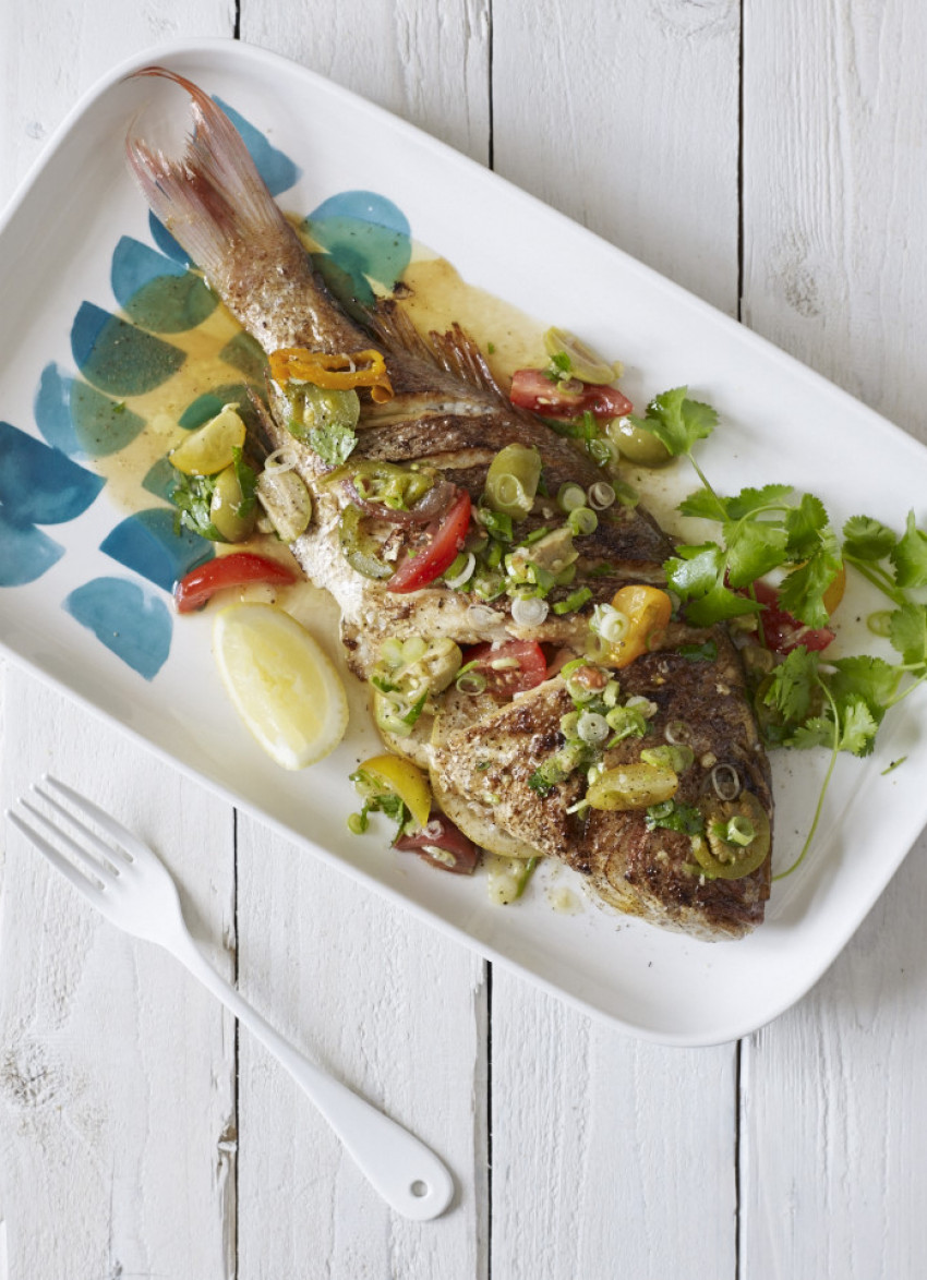 Baby Snapper with Green Olive, Jalapeo and Tomato Salsa