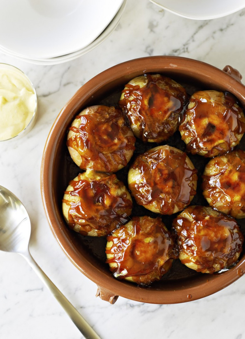 To assemble: Gently enlarge the cavity of each apple with the back of a teaspoon and fill with the cold crema catalana.