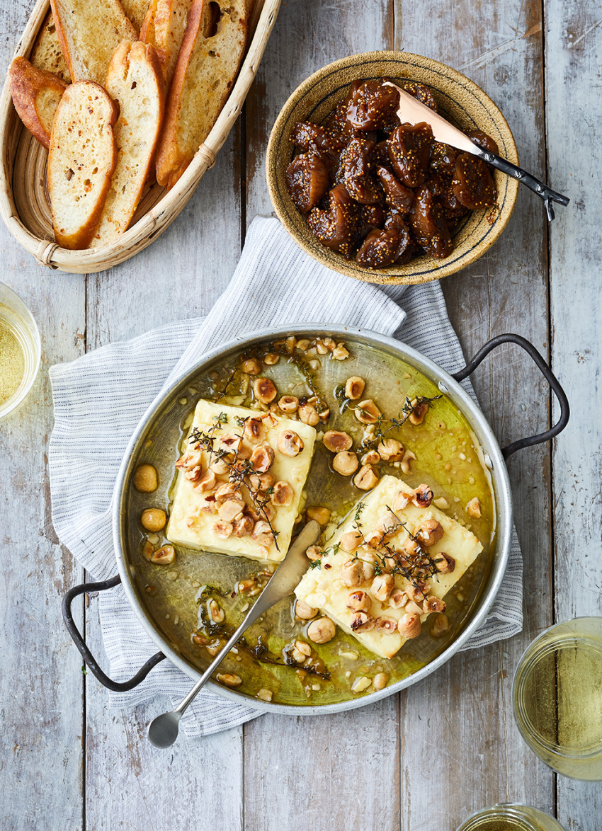 Baked Feta with Honey, Hazelnuts and Thyme with Dried Fig and Marsala Compote