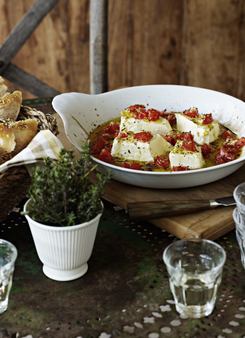 To serve: Smear the warm cheese onto bread, scooping up some of the tomatoes and olive oil.