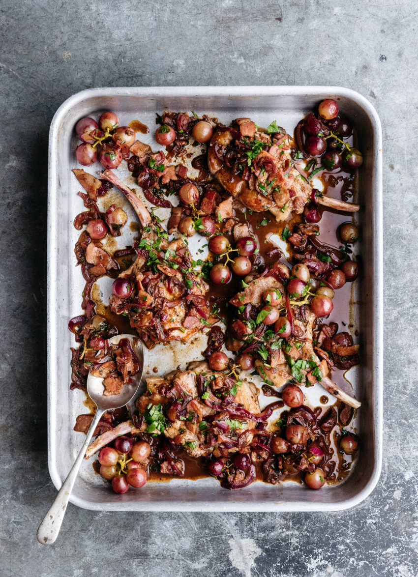 A panful of porky deliciousness! A wonderful combination of juicy grapes, balsamic and rosemary top these tender pork chops. Serve with a creamy mash or soft polenta.