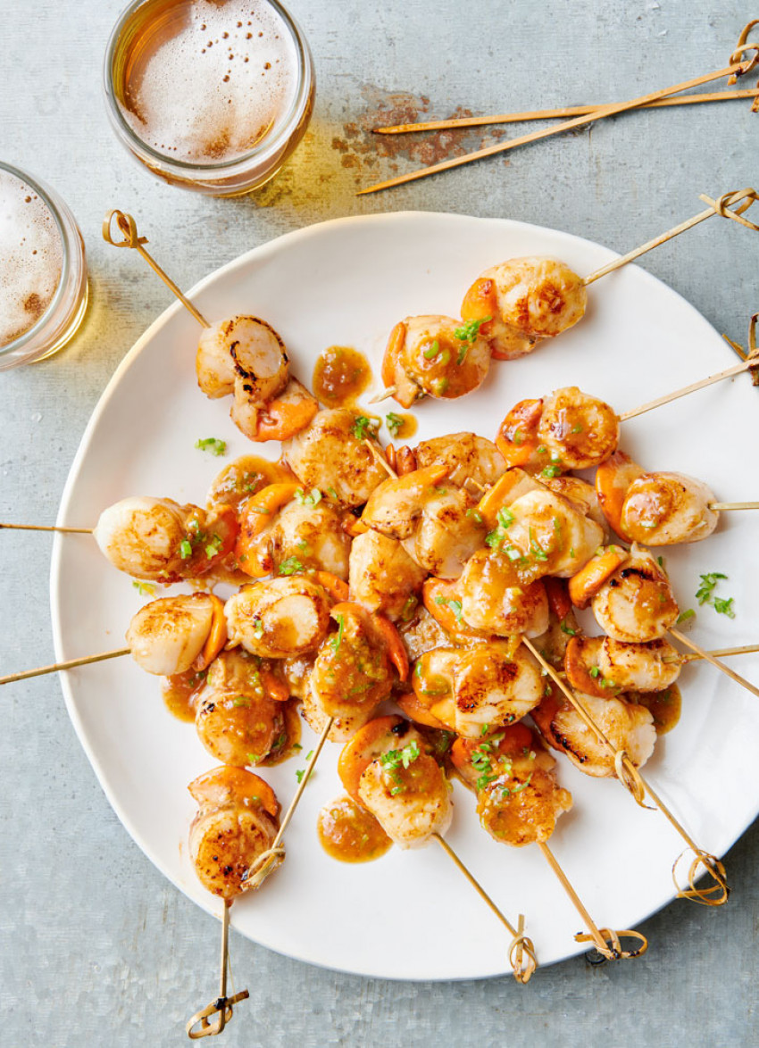 To cook: Thread the scallops onto skewers. Heat a little oil in