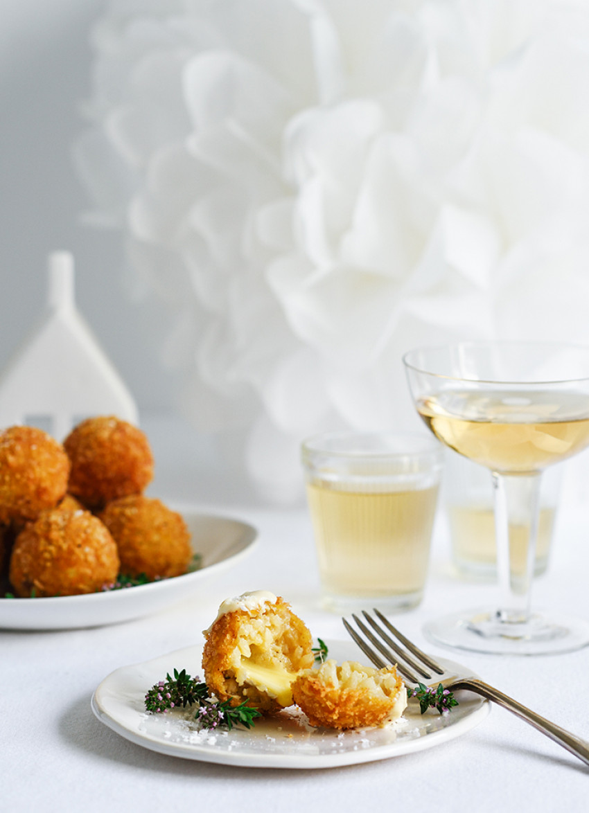 I have been making different variations of arancini for many years now and this flavour combination is one of my favourites. No-one can resist the oozing cheesy centre and when served with aioli on fresh thyme they look pretty as a picture.