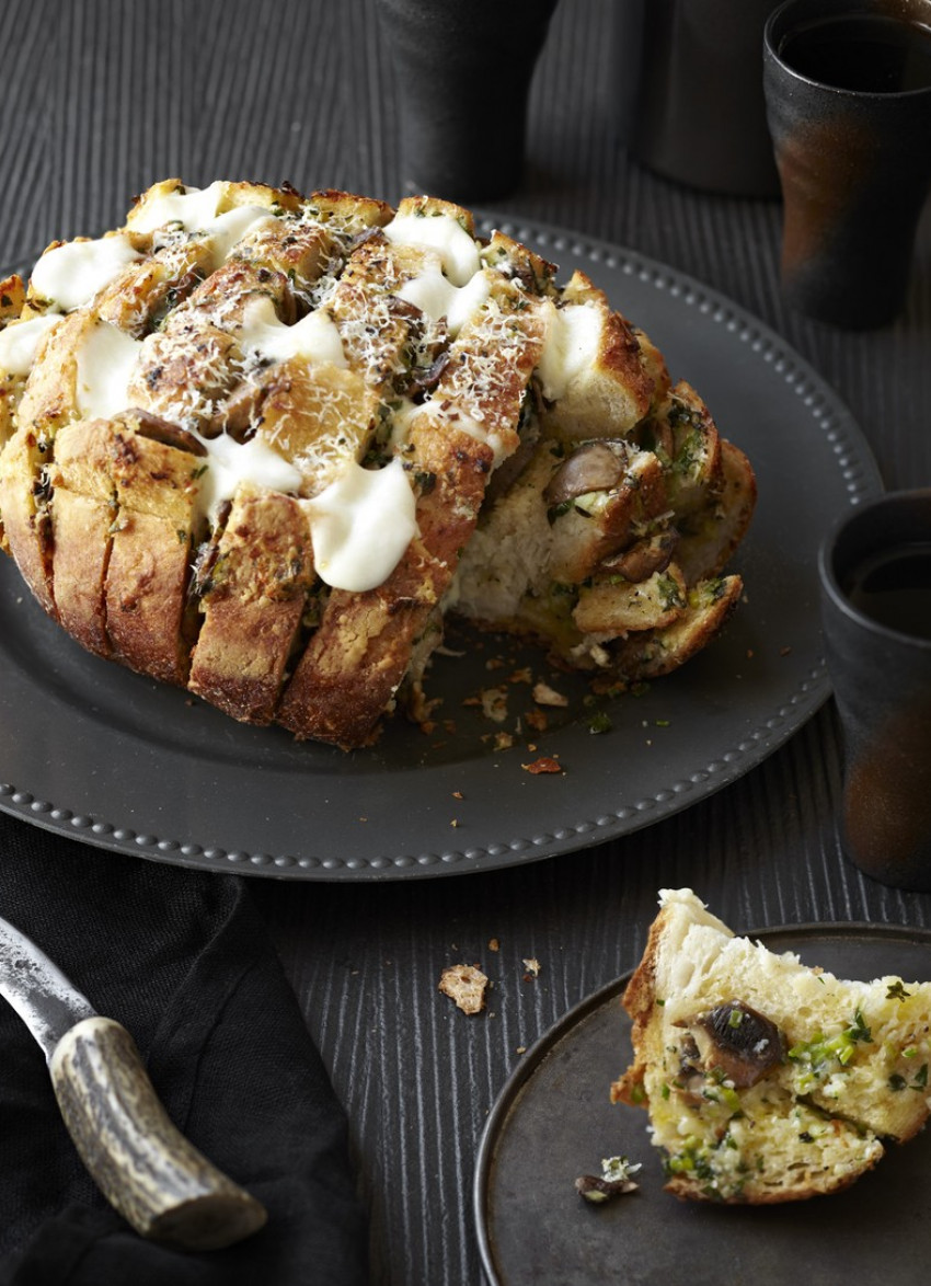 Push the mushroom butter down into the crevices of the loaf and smear a little over the top.