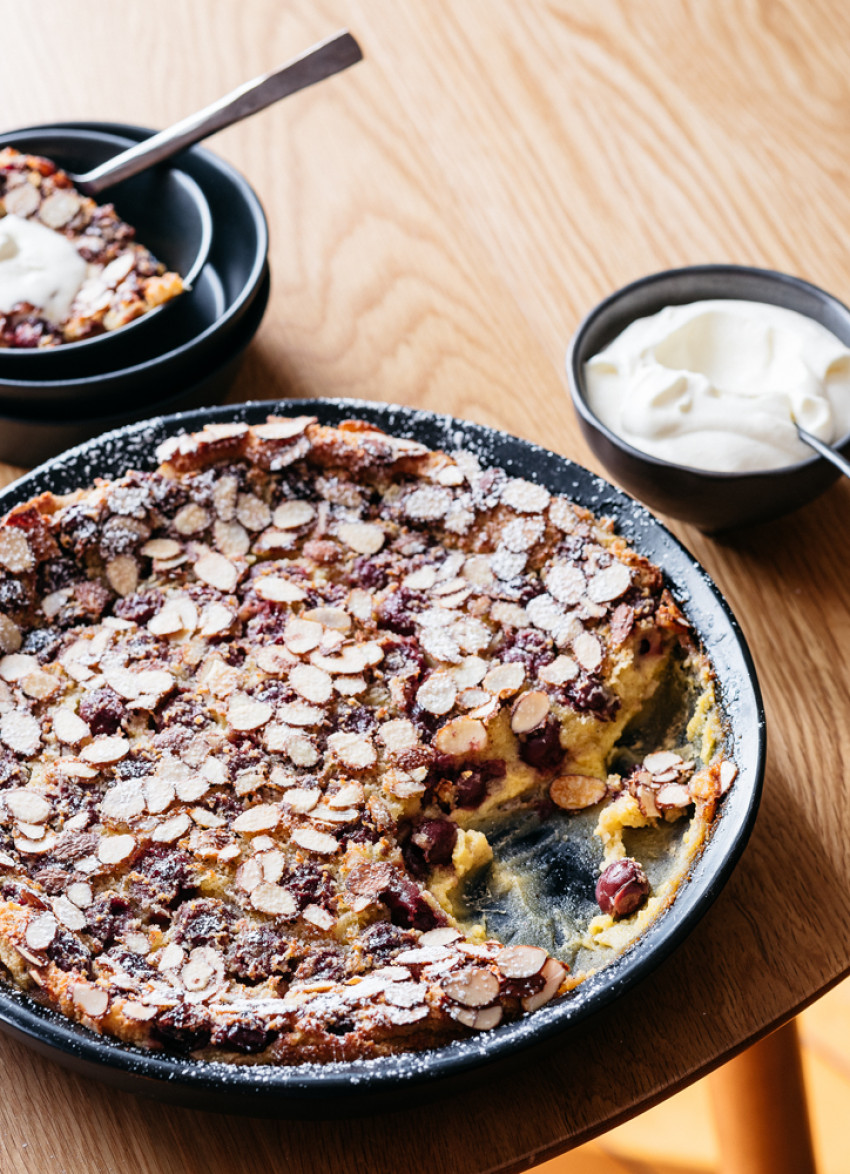 I love the versatility of this delicious pudding – use fresh cherries when in season but it also works beautifully with any type of berry, fresh or frozen, as well as stone fruits, such as peaches and nectarines.