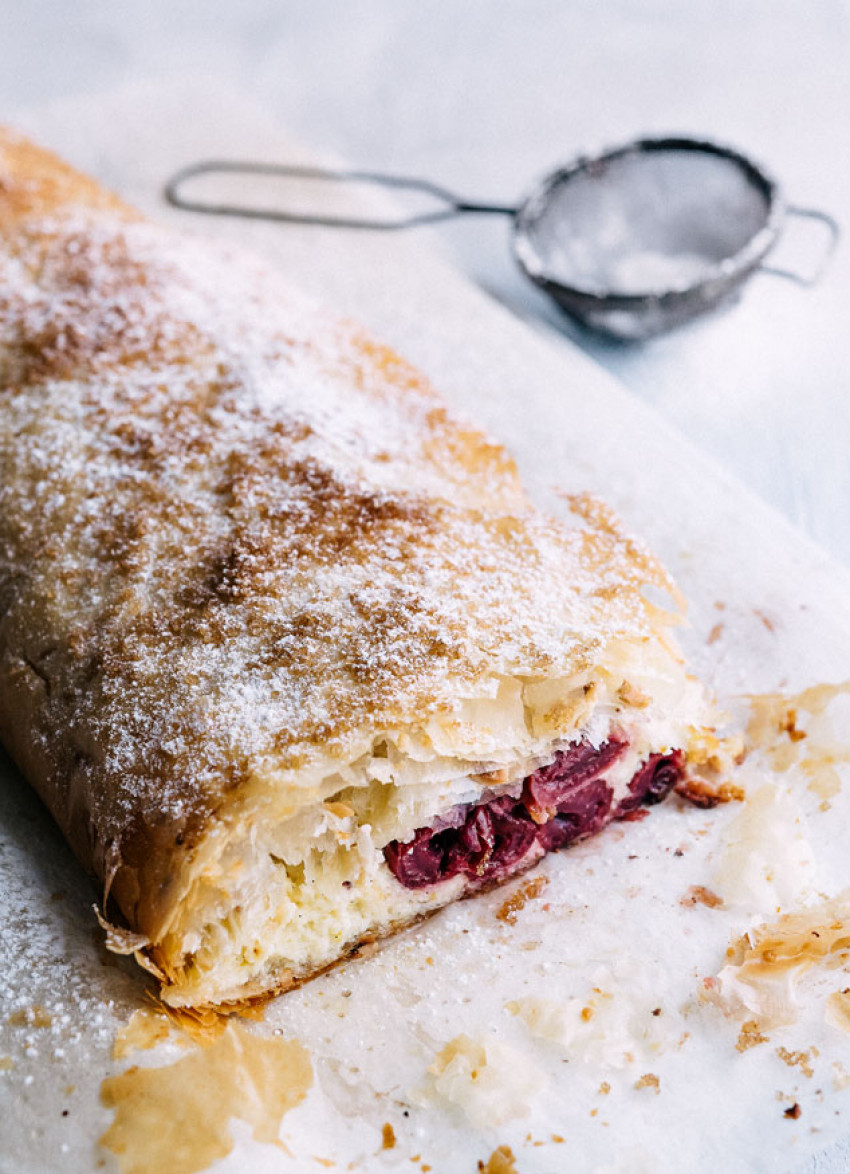While apple is the traditional filling, I love these slightly tart cherries with this creamy filling and the crunch of almonds.
