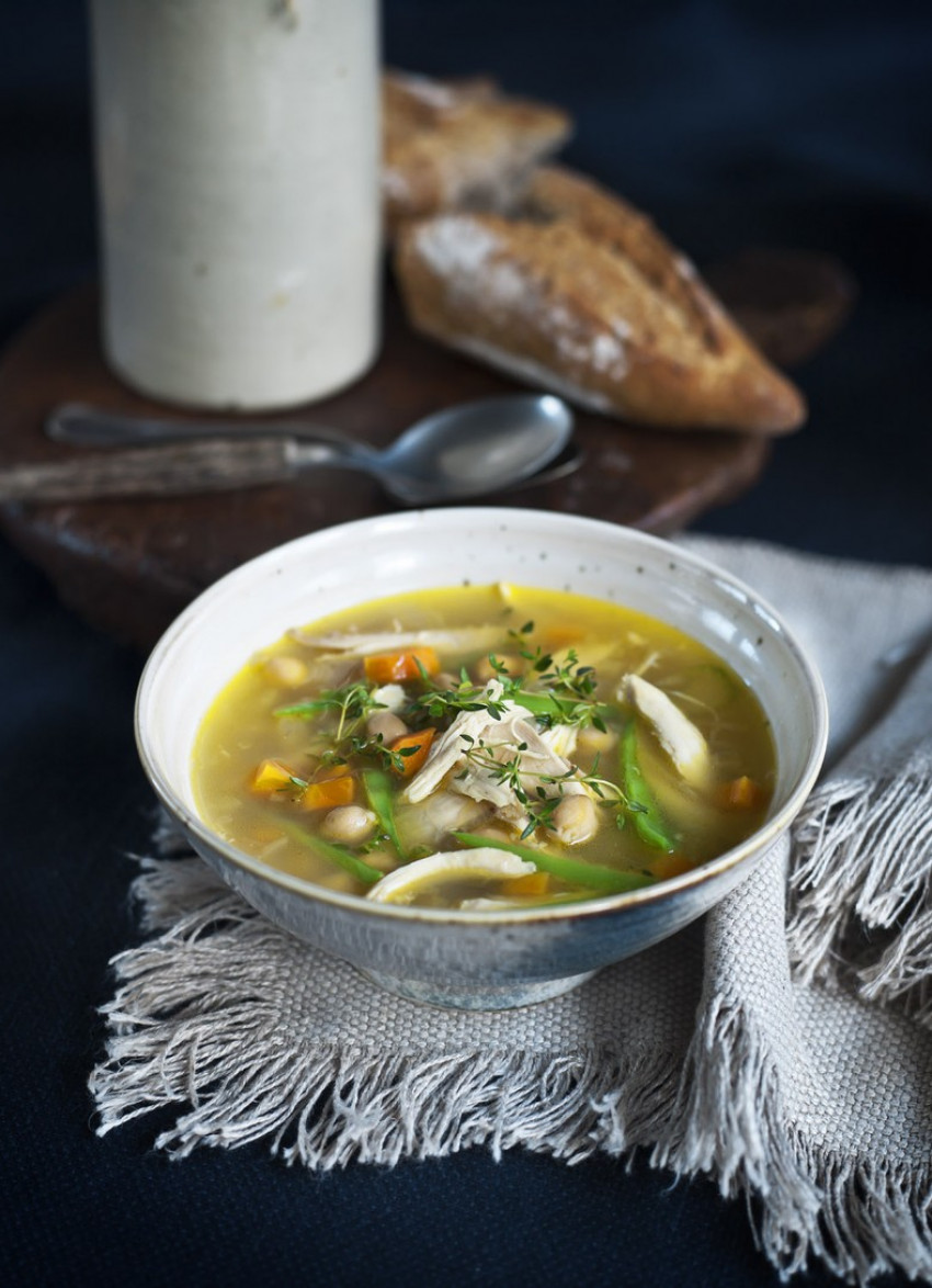 Warm up yourself with this herb and veggie-packed chicken soup. It's a perfect meal for cooler days.