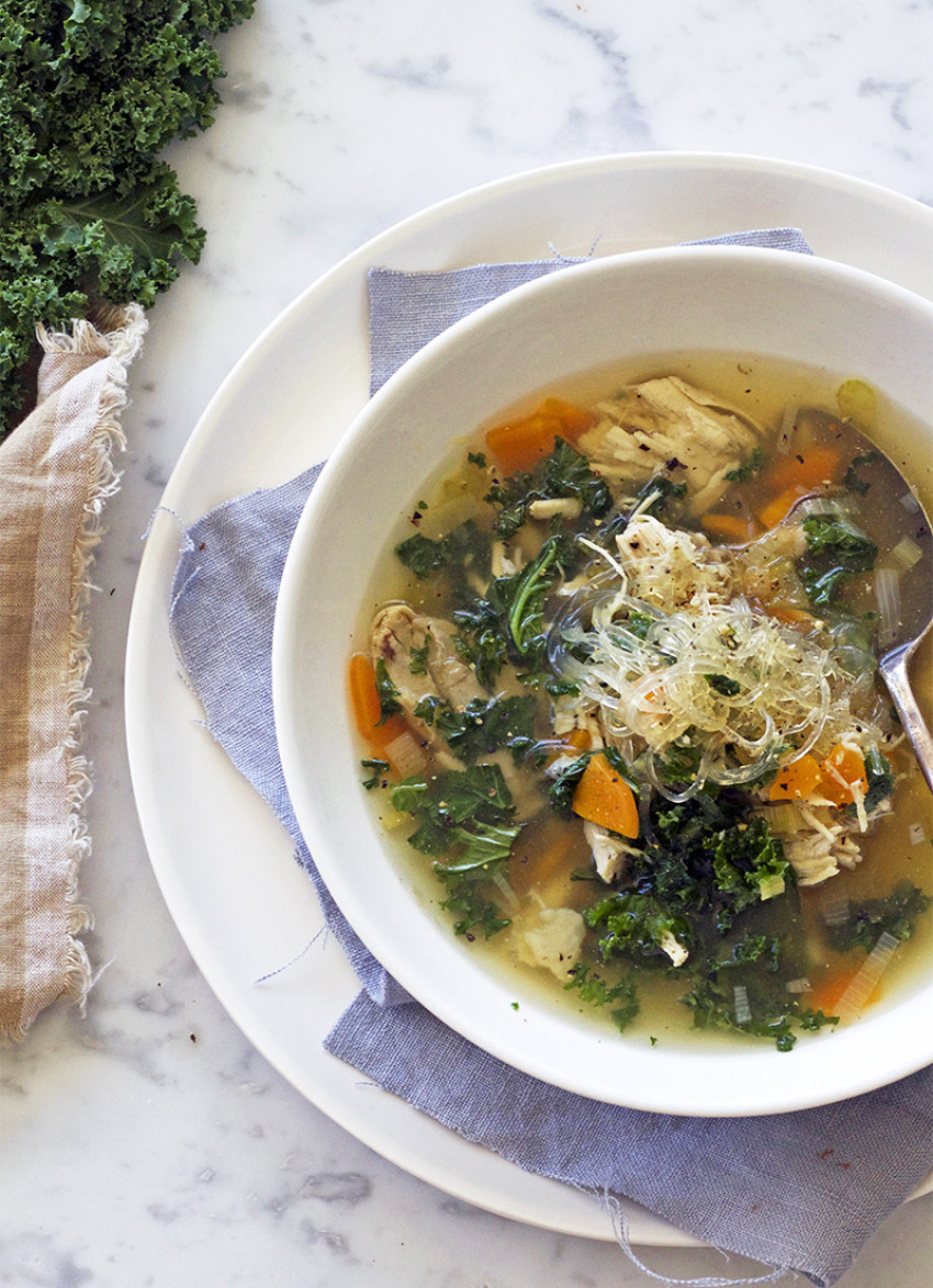 This soup is the epitome of nourishment and comfort. I’ve advised roasting a whole chicken to obtain the shredded meat (and give you a carcass for your next batch of stock). Alternatively, you can use leftover cooked chicken.
