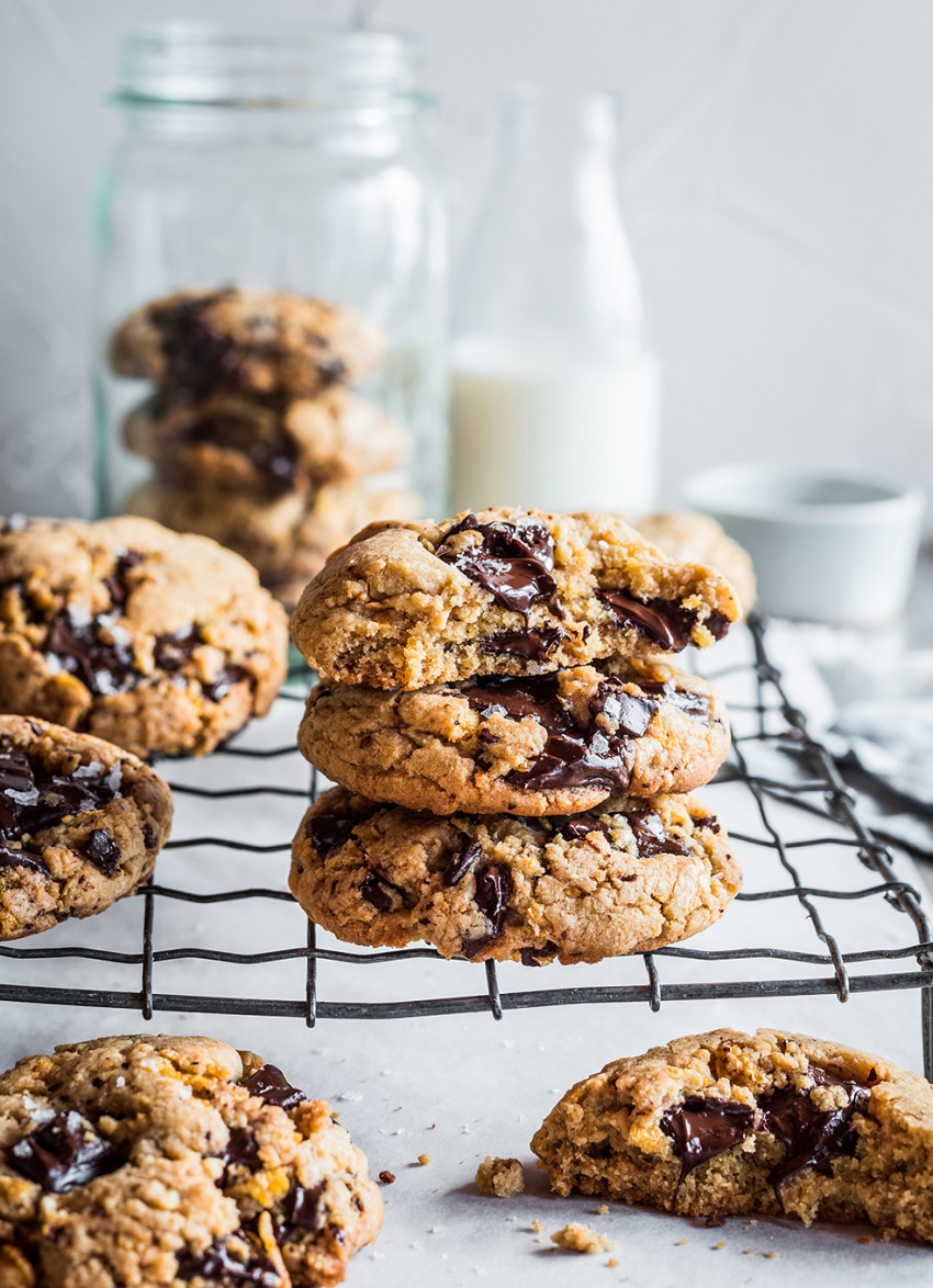 Peanut butter, crunchy cornflakes and dark chocolate chunks make these cookies extremely addictive.