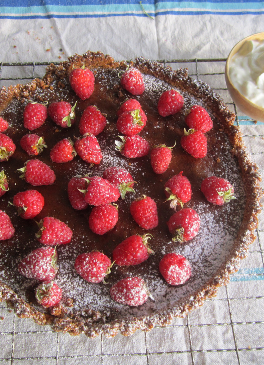 Chocolate, Raspberry and Biscotti Tart