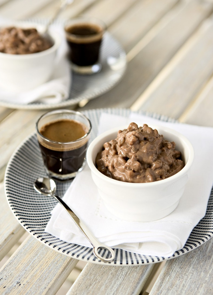 Place all the ingredients in a medium saucepan and slowly bring to the boil, stirring to dissolve the chocolate. Watch carefully as it will quickly boil over once hot. Reduce the heat to low and cook gently, uncovered, for 40 minutes, stirring occasionally until thick and creamy. Don’t let it catch on the base of the saucepan. A simmer mat is ideal for gentle cooking.