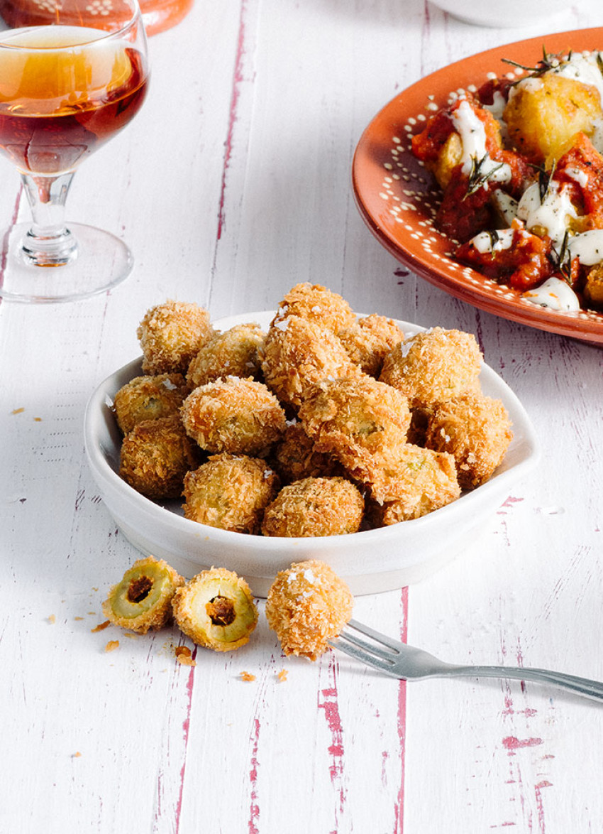 Carefully add the olives, in batches, and cook for 1 minute until golden and crisp. Drain on paper towels. Repeat until all the olives are cooked then serve warm.