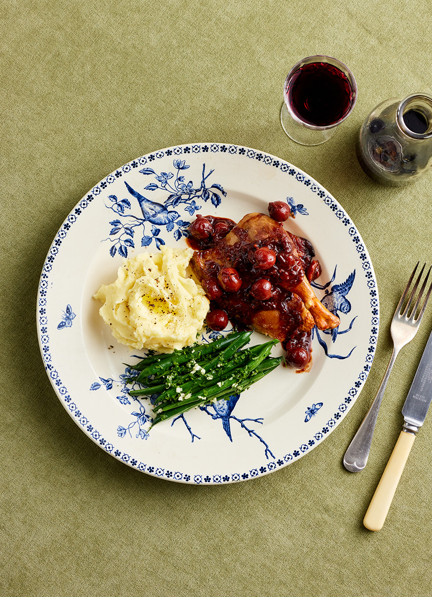 When entertaining, my mother’s signature dish was twice- cooked duck either with a classic sweet/tart orange sauce or this cherry and red wine sauce. When I got older I realised why this worked so well for her as having the duck and sauce cooked a couple of days in advance certainly helped with juggling working full time, family and having friends over for dinner.