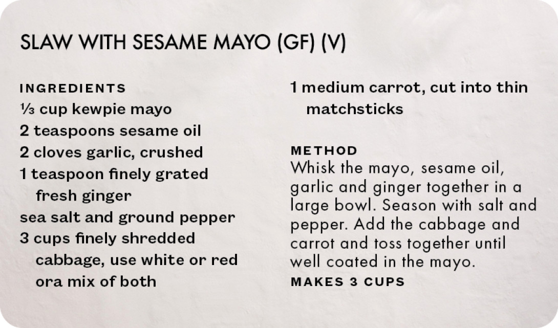 Slaw with Sesame Mayo, see recipe at bottom of page