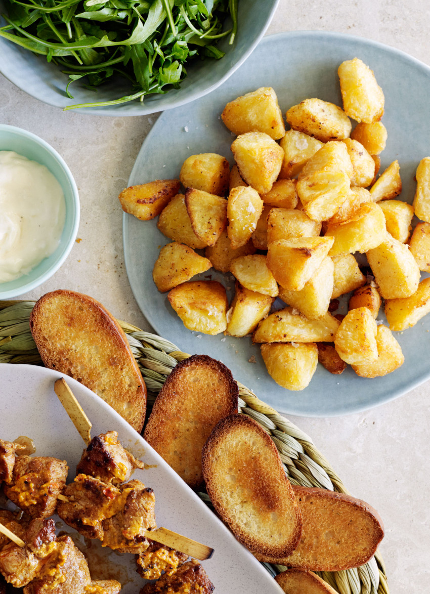 To serve:Place the mayonnaise in a bowl and stir through the crushed garlic. Serve alongside the potatoes.