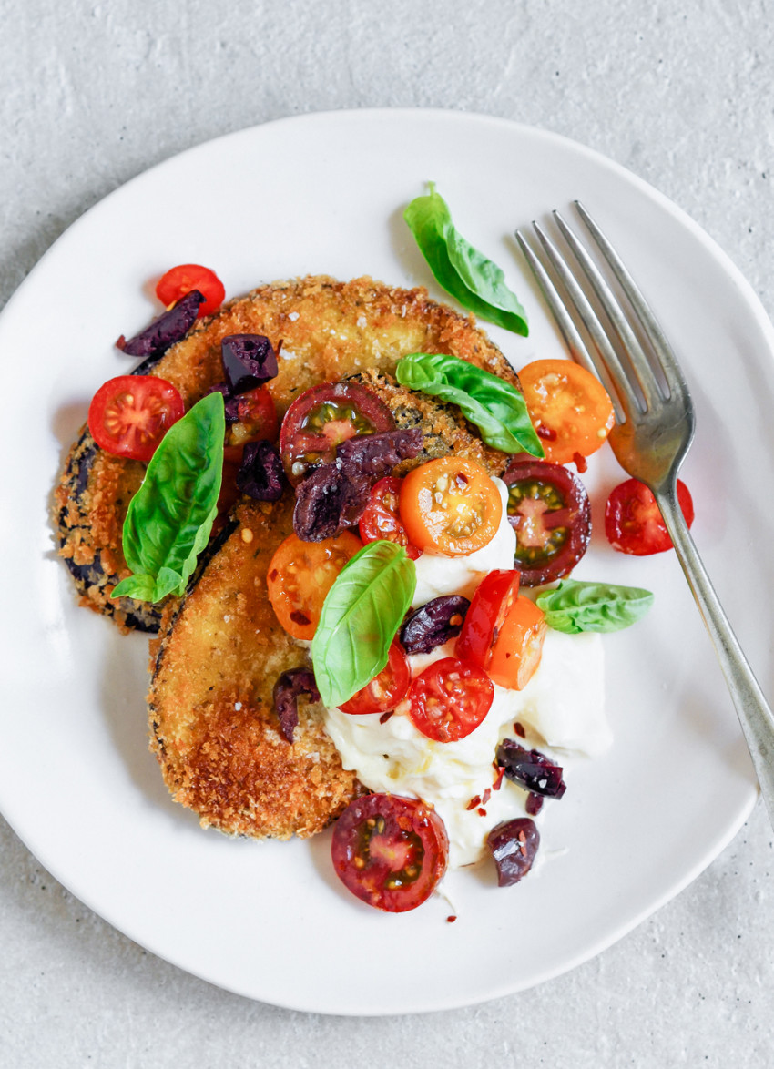 Add oregano and salt to the breadcrumbs and str to combine. Dip eggplant slices first in the flour, then in the egg and lastly, in the breadcrumbs.