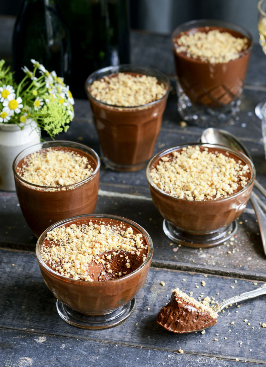 Dark Chocolate Amaretto Mousses with Amaretti Crumbs