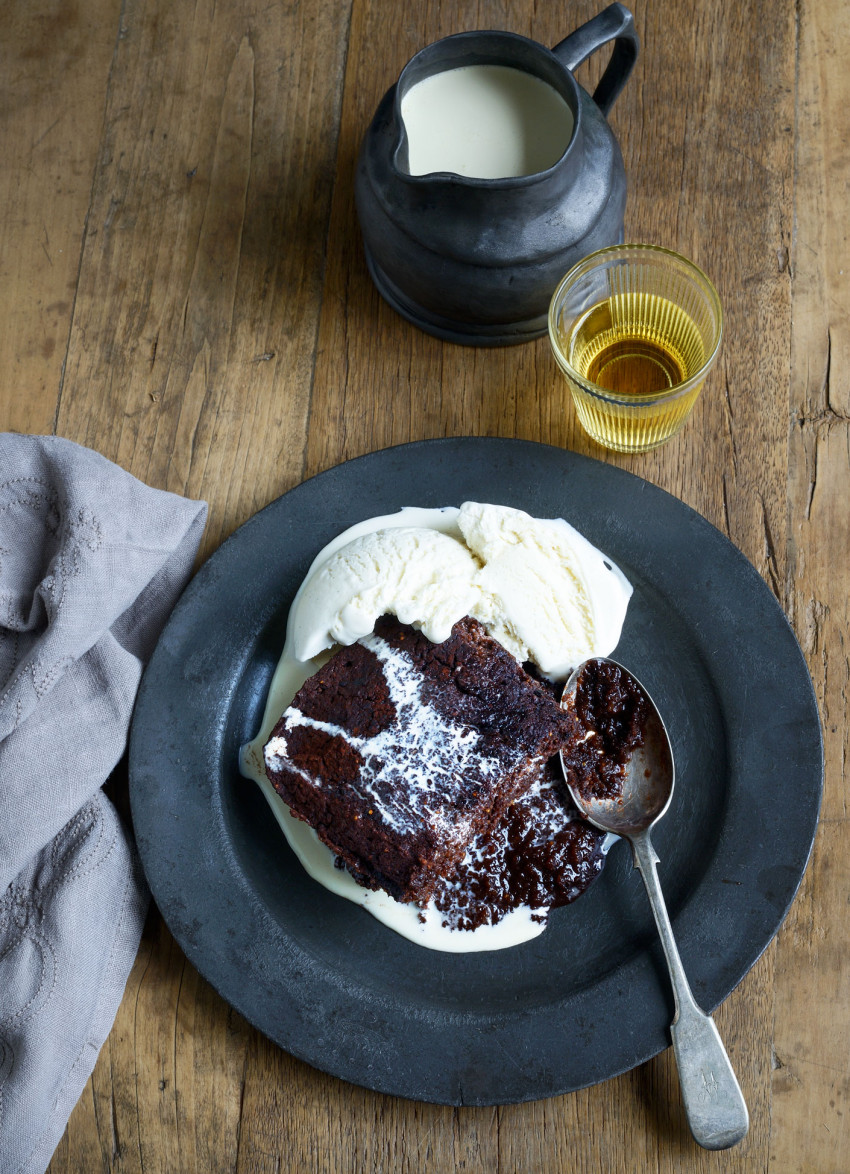 This recipe is my ultimate British/Irish inspired combination. It turns the idea of a figgy pudding on its head by adding chocolate and whiskey, then making it super-simple and self-saucing. Totally decadent and delicious!