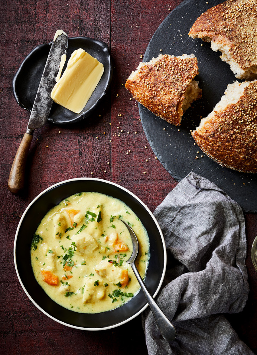 To serve: Add the fish and parsley to the soup and ladle into bowls. Serve with hot crusty bread. Serves 4.
