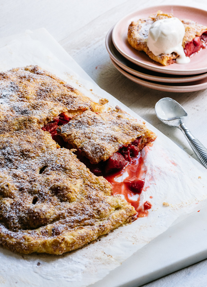 Who doesn’t love a pie – especially one filled with juicy strawberries and tart rhubarb, encased in crispy pastry.