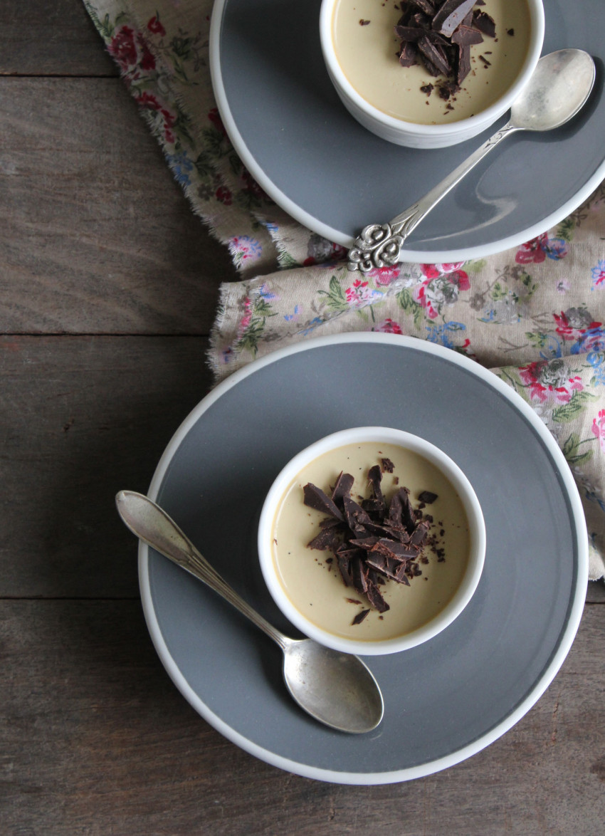 Green Tea and Coconut Sugar Panna Cotta with Dark Chocolate Shavings
