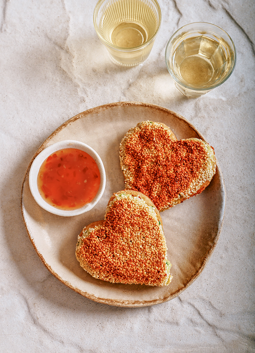These prawn toasts are thick and satisfying, yet still light — a Valentine’s delight!