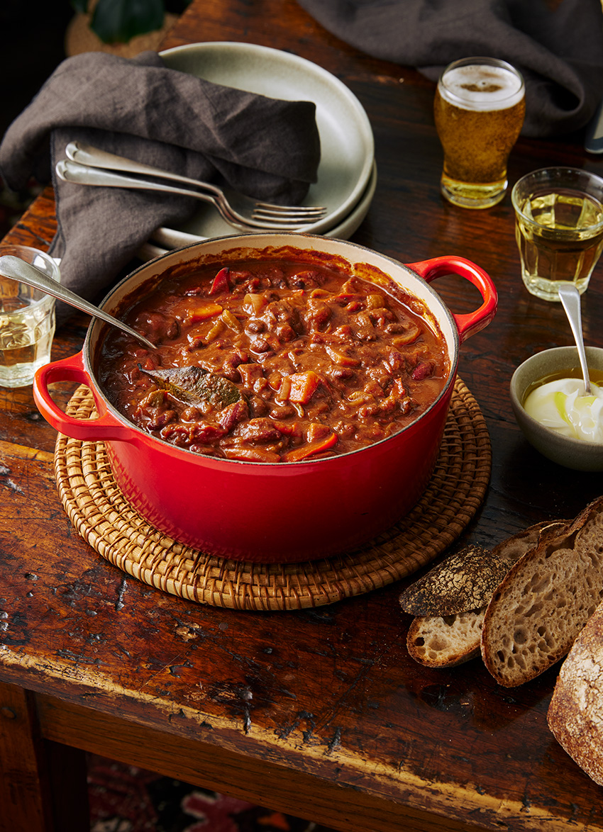 COOK’S NOTE: After cooking, you can tip half the chilli beans into a shallow container and cool quickly then cover and either chill for up to 4 days or freeze.