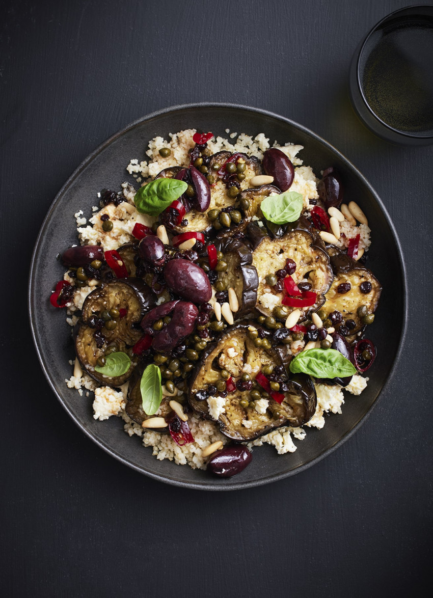 TO SERVE: Spoon the cracked wheat over a serving plate. Layer up the eggplant and feta, then spoon over the dressing. Scatter with basil leaves.