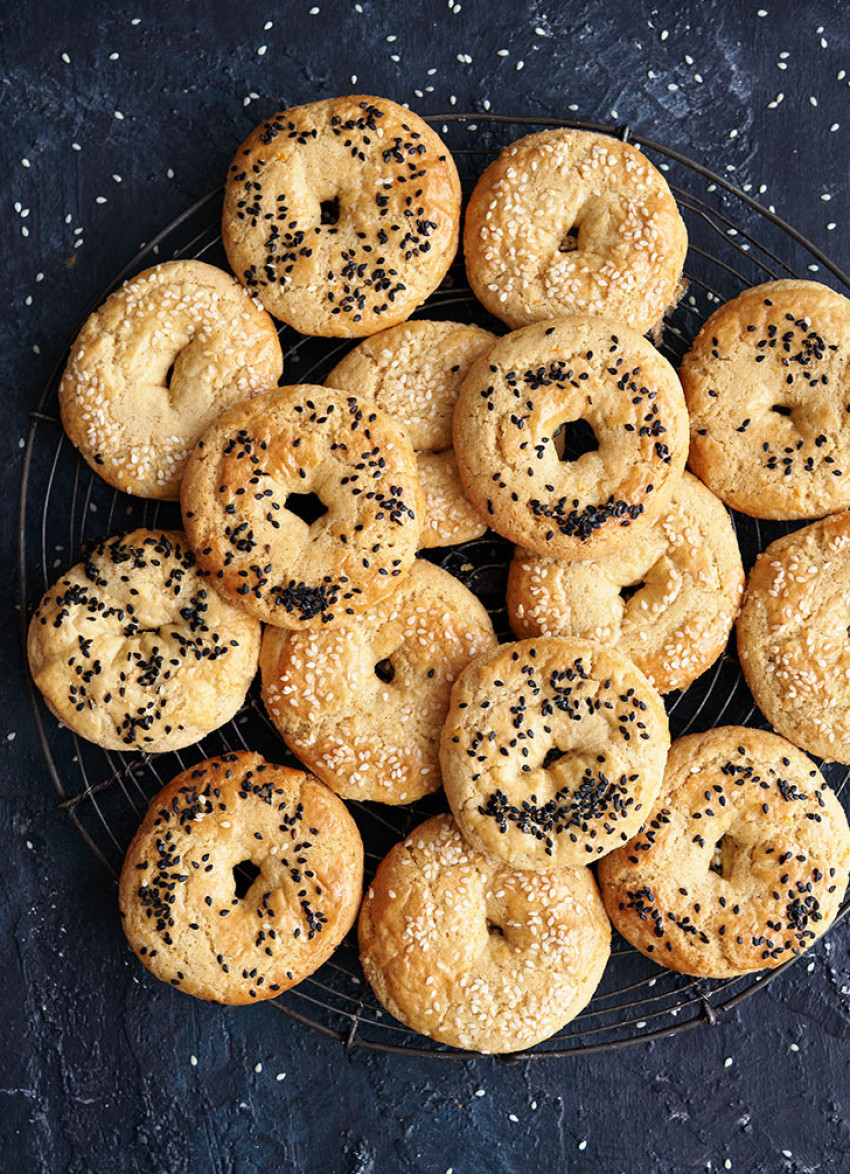 Remove dough from the fridge. Tear off walnut-sized pieces of dough and roll into desired shapes — traditionally, these cookies are baked in bagel shapes or as twists, coils or “S” shapes.